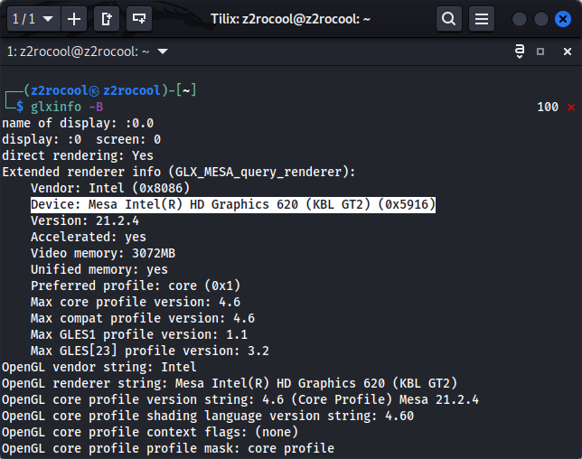 #glxinfo -B : less