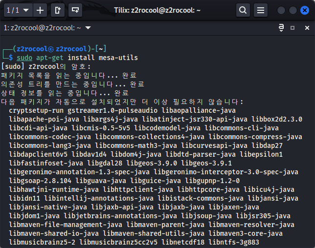일단 mesa-tools 를 설치해서 터미널에서 찾아볼수 있다